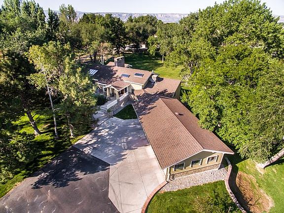 In the lush green North Grand Junction area, you will find this one-of-a-kind property with a stylishly updated home plus an incredible shop AND a guest home! Ideally situated on 4.6 acres with beautifully maintained grounds, the residence sits tucked behind the front pasture, away from the road, surrounded by mature trees and solitude! The Arts & Crafts exterior style is complimented by a beautiful entry including a vintage wooden door. The inviting home has so many special spaces to enjoy - relaxing sun room, tv lounge, theatre room, formal living room, formal dining room, and a roomy chef's kitchen. Beautiful wood floors and high ceilings accentuate the views out of the many windows. The attached garage has 3 wide doors & great storage, and the detached shop with RV bay...you have to see it to believe it. Gaze over the pond and yard from the pergola-covered outdoor kitchen and lounge.