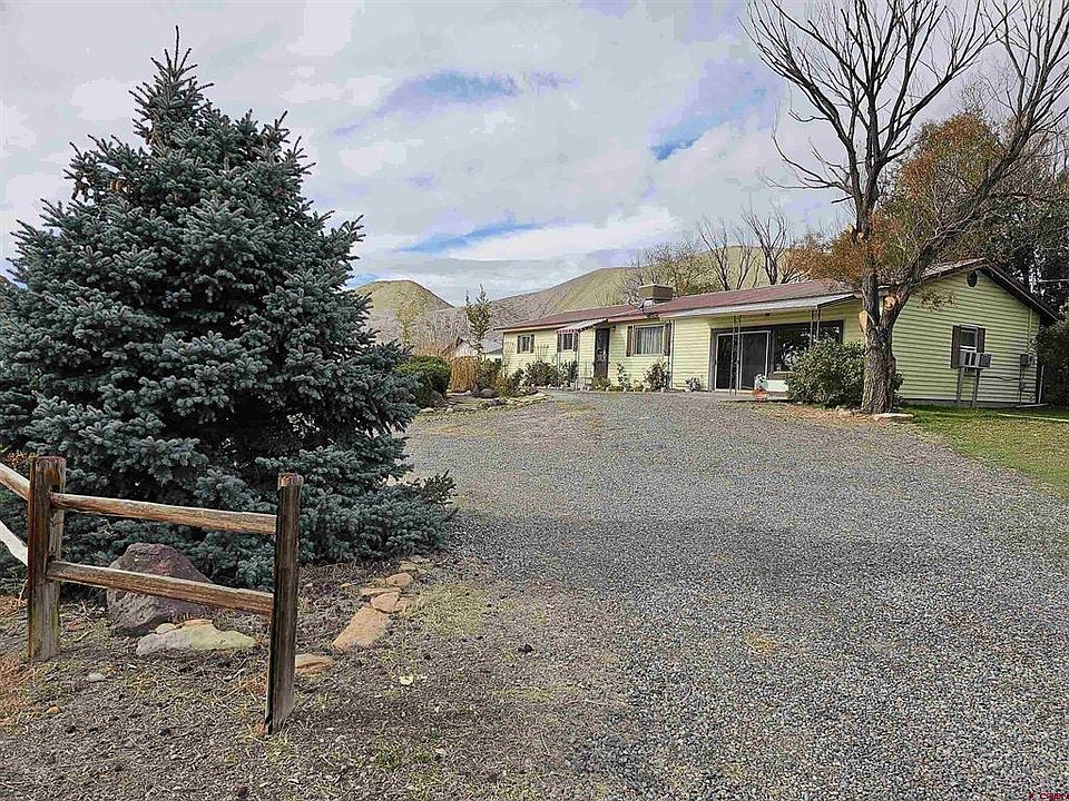 Look out to the Cimmaron Mountain range in Western Colorado from your front porch or hammock on the side yard. This property has the square footage to live comfortably with it's 3 bedrooms, 2 baths, living and multi-purpose room. Multi-purpose room offers many options. Theatre room? Home business? Game room? Lots of potential in this large room. Beautiful hickory cabinets and Baltic brown granite countertops in the kitchen. Plenty of counter space for baking, cooking and appliances. This 1 acre property comes with irrigation for a large garden in the back. There is a beautiful flower garden with roses, lilacs and a crabapple tree. Bring your RV because there is plenty of space to park it. Potential to add an Accessory Dwelling Unit on property. Make an appointment to see soon!
