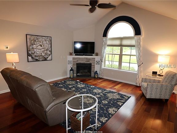 Maintenance Free Luxury Condo in a quiet community. 2 bedrooms, 2 full baths, stunning Brazilian Rosewood floors, sun room, fireplace, gourmet kitchen, granite counter tops, sun tubes, wine cooler, large laundry room, 2 car finished attached garage with epoxy floors. Fenced patio area. Monthly fee includes building & flood insurance, exterior maintenance, lawn care, waste removal, termite bond, 24 hr fitness center, community pool and elegant clubhouse. Centrally located between Savannah, Hilton Head and Charleston.