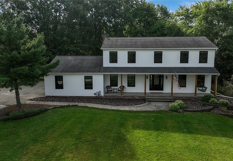 Updates since 2024 include new siding and soffit, gutters - including gutter guards and downspouts, new Pella windows (for both the home and the workshop), new exterior doors - including a French door to replace a sliding door to the rear patio. Interior upgrades inlcude paint, tile, carpet, and refinished hardwood floors. Kitchen renovation includes custom maple cabinets, quartz countertops, appliances and lighting with a large island. A custom built buffet was added to the dining room with matching cabinery and countertop. Three of the four bathrooms have been renovated. Out with the old propane and in with the new natural gas line - so there is a new gas stove, new dryer, new gas water heater, and new high efficiency furnace. Sellers added a new freestanding wood burning stove. The breaker panel has been upgraded to a 200 amp panel. Landscaping updates include replacing rotted railroad ties with treated timbers for the patio steps, leveling of patio pavers, and removal of dead/dying trees and shrubs, and new crushed limestone added to driveway. This beautiful home has had quality work completed and extensive upgrades. It is now ready for someone to call home for many, many years (unless you have to relocate to Texas). Located off Eggleston Road, in Bridle Path Estates, within the award winning Aurora City School district. Priced well below recent appraisal performed 8/27/2025 of $680,000.