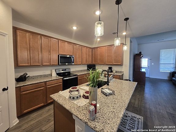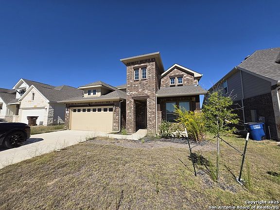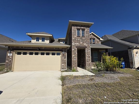 Welcome to your new home, located in the highly sought-after Overlook at Creekside community in the heart of New Braunfels. This fabulous 1.5 story home offers easy access to both San Antonio and Austin. Nestled in the scenic Texas Hill Country, this home is just minutes from Interstate 35, placing you close to prime shopping, dining, and entertainment options. The open-concept layout includes a grand living area that flows into a gourmet kitchen, equipped with an oversized island, stainless steel Whirlpool appliances, 42-inch maple cabinets, a walk-in pantry, and a striking glossy white backsplash. Beautiful wood floors cover most of the home. The kitchen's thoughtful design ensures the chef is always part of the fun during gatherings. Step through the 8-foot modern rain glass front door and be greeted by a foyer leading an open floor plan. Additional features include window treatments throughout, reverse osmosis, whole house filtration system, and a water softener system for added comfort. For Safety, a ring doorbell, entry door keypads, and cameras throughout.