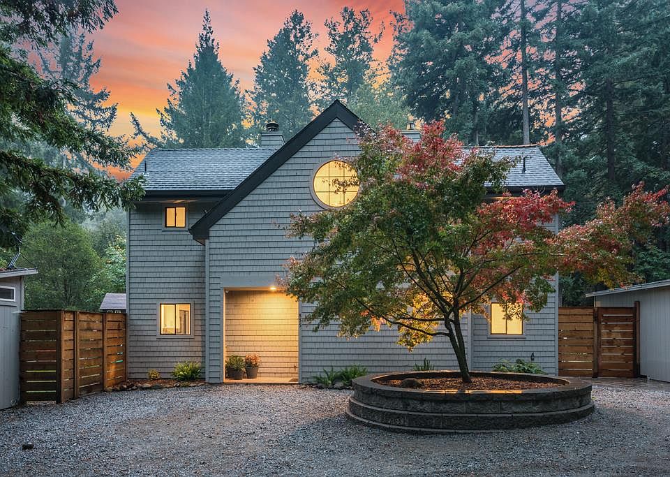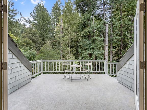 During the short drive up to this beautiful home, you get a tour of every terrain Santa Cruz offers, at warp speed: coastal, valley, countryside, & finally into the brink of the redwood forest. The quick cruise primes you for the gorgeous scenery at home - and that's just from the driveway. As soon as you walk into the living room, you'll see huge windows that open up to the forest, unobstructed by a patio that feels like it has an infinity edge. That massive paver stone patio, we might add, has enough square footage for a shindig of any size. For more nature, walk to Byrne Trail and enjoy one of Santa Cruz's best-kept secrets (spoiler alert: this hike comes with ocean views). Back home, get cozy by the central wood-burning stove in the main living space, upstairs in the loft, or on one of the large decks in the treetops. Those make great office options, too, since fiber optics is available. When you live here, you enjoy every landscape that Santa Cruz has to offer.