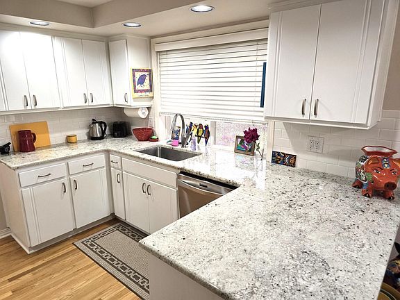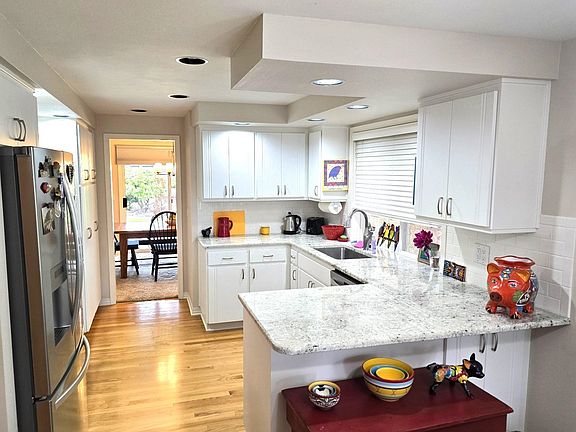 HUGE $20K PRICE DROP! Gorgeous 1684 SF single level home with a remarkable yard. Large primary and second bedroom. Lovely kitchen with white cabinets, granite counters, and great appliances. Hardwood in entry, kitchen, eating area, and hall. Living room has high ceilings, and gas FP. Formal dining room. Main bath has upgraded 5 ft walk-in shower, granite counters, double sinks, tile floor and skylight. Solar panels offer dramatic power bill savings. AMPLE STORAGE!