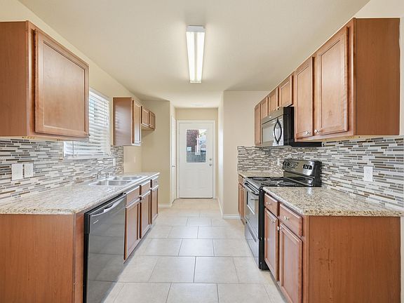 Attached garageGenerous floor planTile and carpet flooringGranite countertopsStunning multicolored tile backsplashPlenty of cabinet space