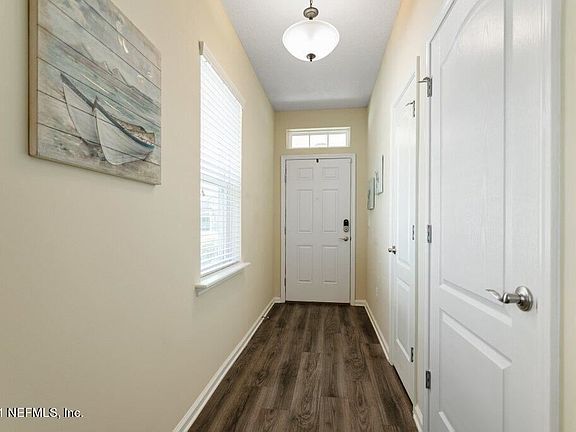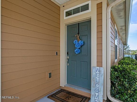 This lake front home built in 2018, is six miles from the beach and now ready for your visit! Located south of St. Augustine in the Villages of Valencia, you'll find nice neighbors, walking trails, a community pool, and a great new place to call home. With an open floor plan, you'll see straight through the kitchen, dining, and great room, through the custom sunroom right out to the lake - very peaceful and beautiful. The master bedroom has an especially good view through nice big windows - yet it is very private there. With luxury vinyl through the main areas and carpet in the bedrooms, you'll love all 1939 square feet. The two-car garage leads into the guest rooms and guest bath, then right on past a large laundry room, into the kitchen with a great big walk in pantry.
