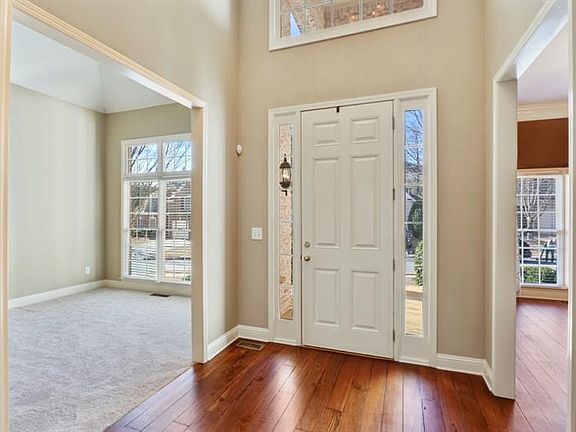 Exceptional move-in ready home with finished basement and level fenced backyard minutes from GA 400 & The Avenues in sought-after Forsyth STEM school district. Main level has custom pine hardwood floors rare for this price and location, 10' ceilings, a kitchen open to living room with fireplace, separate office, dining room and guest bedroom with a deck overlooking a private yard backing to green space. Upstairs you will find the master suite w/trey ceilings, 2 HUGE his and her walk-in closets, separate tub and shower and his & hers vanities. There are 3 additional