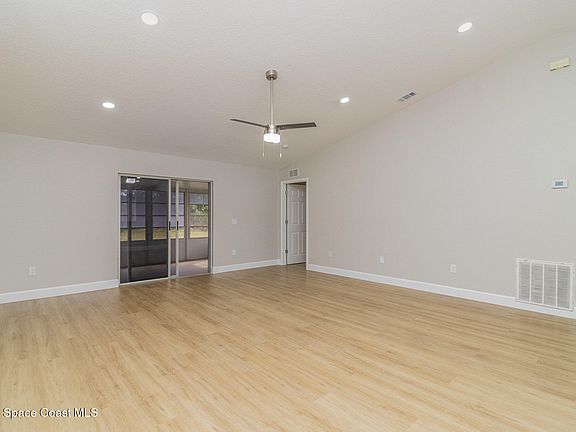 PRICE REDUCED SUPER MOTIVATED SELLER!!!!!! Show with confidence to your pickiest buyers. This Beautifully Home was completely renovated 2025. The large eat in kitchen with two pantries is completely remodeled to include new cabinets, quartz countertops, new sink, all brand-new SS steel appliances. Master Suite features large walk in closet, spacious bathroom , new cabinet, sink, walk in Shower. Second Bathroom completely renovated. Open Floor plan, great room opens to screened patio and a large backyard. New Waterproof vinyl plank flooring throughout, freshly painted inside and out. Roof replaced 2019, New Hot Water Heater and HVAC 2022. Septic System Cleaned 2022. Located in the heart of Palm Bay with access to major roads and highways, schools, shopping malls, medical facilities, movie theatres etc. etc. Don't miss showing this one! Vacant ELB. Please schedule appointment on Showing Time