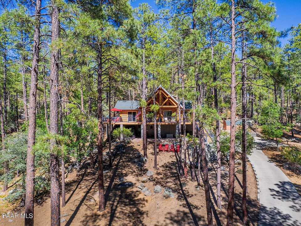 Family Dream Cabin Retreat For All Seasons:Come enjoy the 4 seasons that Prescott has to offer. The merriest season of all is right around the corner! Play in the snowy pine covered hillside that this stunning 4-bedroom plus loft, 3-bath log cabin has to offer. It feels like it was pulled straight from the pages of a mountain escape dream. Built from massive peeled logs, it welcomes you with wraparound decks and a screened-in porch--the perfect spot to sip your morning coffee as sunlight filters through the trees.Step inside to a soaring great room, where a classic wood-burning fireplace anchors the space, surrounded by dramatic windows and rich log finishes. The remodeled kitchen features hickory cabinetry, granite counters, and stainless steel appliances--ideal for gathering after a day of outdoor adventure.Downstairs, a private entry leads to a cozy 8-bed Western Bunkhouse, complete with its own layout and authentic mountain charm. It's perfect for guests, extended family, an in-law suite, or use as a VRBO rental. A whole-house Generac generator ensures you'll always be powered up, no matter what the mountain weather brings. And when the evening cools off, the hot tub will be your favorite spot to unwind under the stars.Outside, the fun continues with a volleyball and bocce ball court, two zip lines, and a sledding hill weaving through the tall pines. There's even a dedicated RV hookup for visitors, and a 2011 Yamaha Rhino/700 ATV is available for purchase to make exploring your surroundings effortless.Upstairs, flexible sleeping spaces offer comfort and versatility for big family gatherings, weekend guests, or peaceful retreats. Throughout the home, warm wood accents and thoughtful finishes create an atmosphere of rustic elegance.This cabin isn't just a getaway--it's a place where comfort, adventure, and some hot cocoa in front of the cozy fireplace come together in one unforgettable mountain retreat.Don't miss your chance to experience it--book your viewing today!