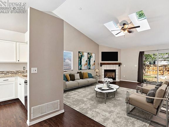 Welcome to your peaceful retreat in the heart of Fountain! This beautiful single-story home combines convenience, comfort, and an enviable lifestyle—all with an assumable loan to make your dreams even more attainable. Step inside to a bright and airy space filled with an abundance of natural light from large windows and skylights, flowing across stunning hardwood floors and soaring vaulted ceilings that create a sense of openness and warmth. Modern colors throughout the home offer a fresh, stylish look. The spacious living room is ready to host cozy evenings by the fireplace—perfect for relaxing at the end of the day. The updated kitchen will delight any cook, featuring sleek stainless steel appliances, granite countertops, a spacious pantry, and ample storage. Whether it's hosting dinner parties or enjoying a quiet breakfast, this kitchen is designed to inspire culinary creativity. The master suite is your personal escape, complete with an ensuite bathroom and double closets for all your storage needs. Two additional bedrooms and a full bathroom provide extra space, offering versatility for family, guests, or a home office. Head outside to your private backyard oasis—an ideal setting for gatherings or simply enjoying the Colorado sun. Nestled in a desirable neighborhood, the home offers easy access to nearby schools and a simple commute to Peterson, Schriever, or Fort Carson. This move-in-ready gem is waiting for you to start enjoying all that Colorado has to offer. Whether you're looking for your forever home or a weekend retreat, this property delivers on all fronts. Don't miss your chance to experience the best of Colorado living. Schedule your showing today and claim your own piece of paradise!