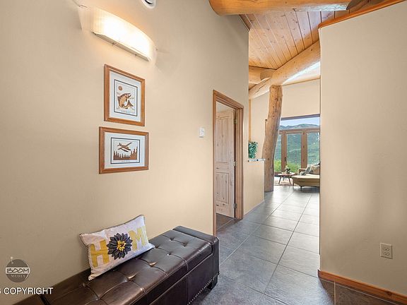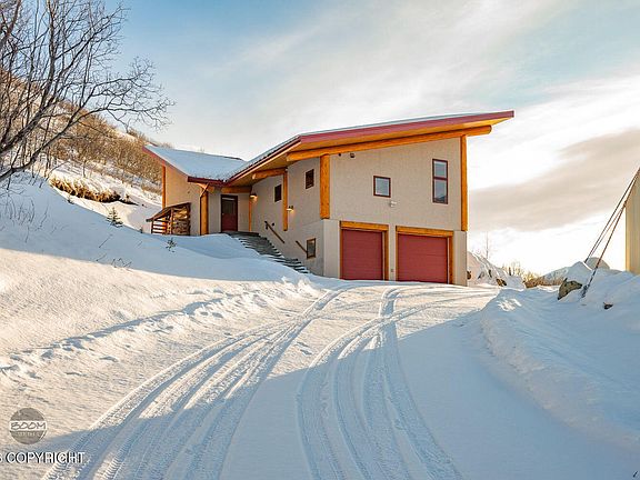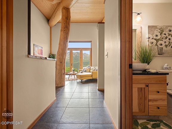 Wake each day to the quiet grandeur of Alaska's mountains and the ever-changing beauty of the valley below. Perfectly positioned in the heart of scenic Southfork Valley, this exceptional custom home is a rare expression of craftsmanship, comfort, and connection to nature.Thoughtfully built by Southfork Construction and CMM General Contractors, the residence showcases 14'' Canadian Spruce logpost-and-beam construction, a refined latex stucco exterior, and advanced energy-efficient systems including SIPS panels, ICF construction, and in-floor radiant heat throughout ensuring year-round comfort in every season. Designed to honor its breathtaking surroundings, the home offers panoramic, unobstructed mountain and river views from nearly every room. The vaulted great room is both dramatic and inviting, featuring tongue-and-groove ceilings, expansive windows that frame the landscape like living art, and a warm Soapstone wood-burning fireplace that anchors the space. Slate flooring flows seamlessly through the main living areas, leading to a gourmet kitchen created for both everyday living and inspired entertaining. Custom dovetail cabinetry, granite countertops, premium Bosch appliances, under-cabinet lighting, a walk-in pantry, and a generous bar-height island combine elegance with function. The lower level offers a spacious bonus room with rough plumbing in place for a third bath ideal for guests, a media retreat, or future expansion. With 728 square feet of garage space plus RV parking, there is ample room for all your Alaskan adventures. Backing directly to Chugach State Park, this property offers complete privacy with no neighbors in sight and immediate access to world-class hiking, skiing, and snowshoeing trails. A private mountain weather station provides real-time conditions streamed directly into the home an extraordinary feature for those who live in tune with the land. Secluded yet remarkably convenient, this retreat is just minutes from the Glenn Highway, JBER, and downtown Anchorage. A rare opportunity to own a sanctuary where luxury, nature, and solitude exist in perfect harmony.