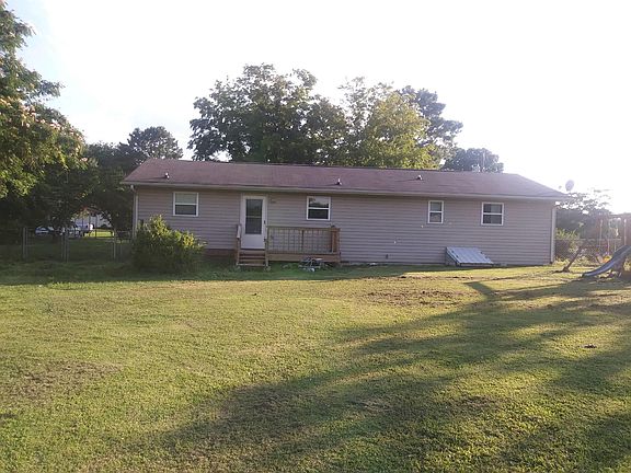 Ranch home on over 1/2 acre nearly perfectly level lot with fully fenced back yard which has a HUGE detached workshop & storage shed and a deck just outside of the kitchen for grilling out. Come on inside and enjoy the open Living Room. The Kitchen has plenty of cabinet & countertop space. An oversized Recreation Room would accommodate a pool table or ping pong table or you could use it for a workout room. No carpet in this home - ALL laminate hardwood flooring in the main living areas and vinyl flooring in the bathrooms for easy clean up. There's also a full sized laundry room (Not stuck in a closet). Home has been updated with new front door, new windows, new HVAC, newer washer/dryer and new deck. It also has a wooden play structure for the kids.