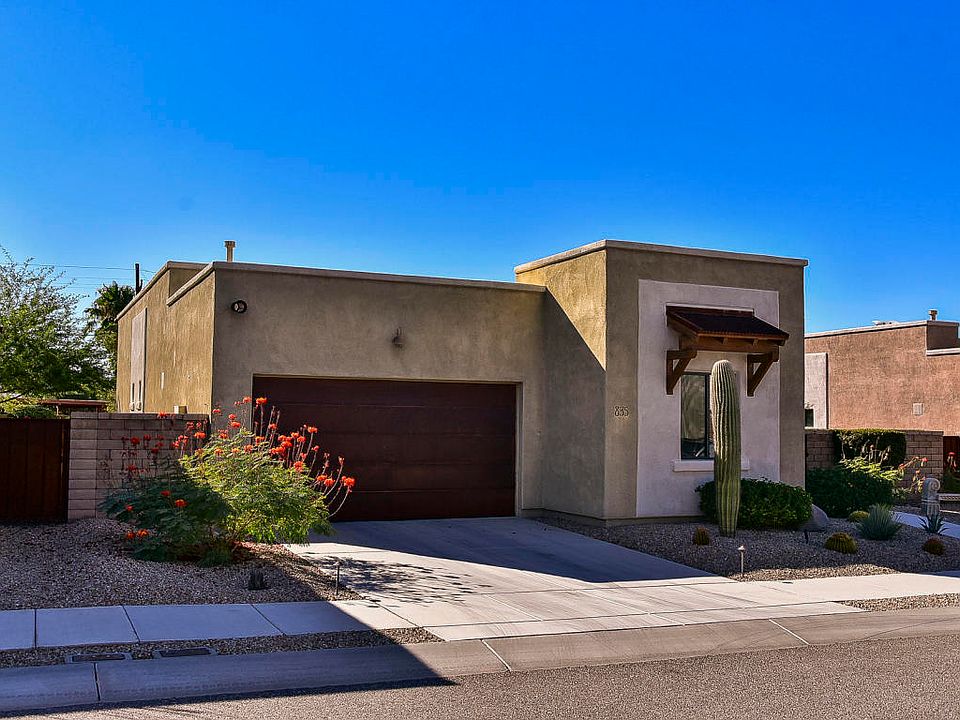 This Mesquite built home is absolutely gorgeous inside and out! Amenities galore, stainless steel appliances, gas stove, plantation shutters, granite counter tops, eleven foot breakfast bar, eight foot doors, gas fireplace . . . too numerous to mention. Master suite boasts walk in closet, dual sinks, custom shower and garden tub. The beauty and serenity continue outside with a back yard that is maintenance free year round. The lush vegetation covered block walls and above ground planter box please the eye with soft surroundings. Great mountain and sunset views. TEP guarantee, double car garage and much much more. This is a MUST SEE!