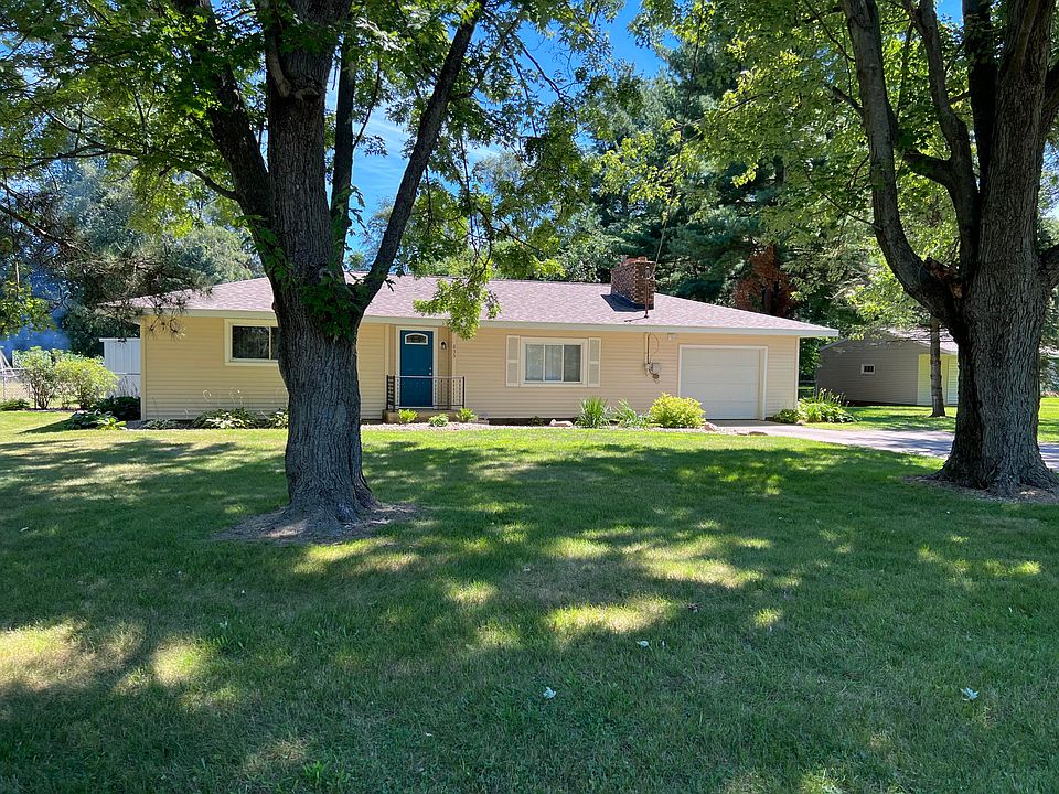 Rural Country Setting on a beautiful huge lot. Boat launch is just around the corner and a lake view across the street from this unique property. This nicely maintained three bedroom with one full bathroom is move-in ready! Spacious eat in kitchen and appliances are included. Large living room has wood-burning fireplace and beautiful hardwood floors. Many updates include newer roof, furnace, front door, window treatments and freshly painted. Backyard is fenced and has a beautiful deck for entertaining family and friends plus a one car attached garage, Call today for your personal showing!