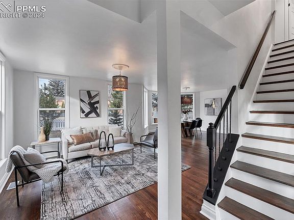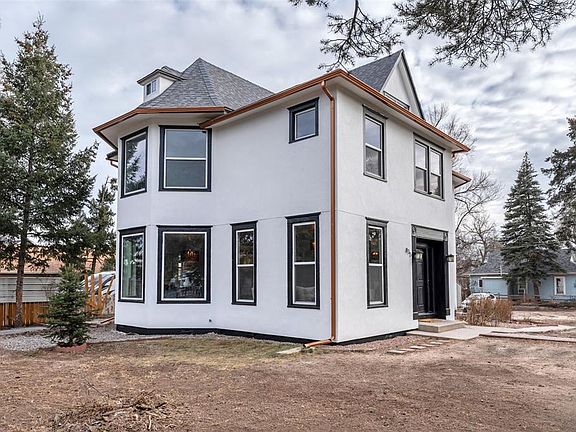 Discover this captivating 3-story Modern Victorian in the heart of Colorado Springs, boasting proximity to all the city's finest attractions. Moved from the prestigious Old North End neighborhood when the roads were expanded. The open main floor plan seamlessly integrates a great room for entertaining, complemented by a cozy sitting room or family room off the foyer. Sunlight bathes each room through oversized windows, accentuating the warm ambiance of the wood floors that grace most of the home. The kitchen and bathrooms showcase elegance with granite countertops and ceramic tile floors. Step into a world of renewed charm with new doors, updated light fixtures, fresh paint, plush new carpeting, and the tall ceilings create an airy atmosphere. The second floor houses a convenient laundry room, storage closets, and a pantry for practical living. The exterior is adorned with beautiful landscaping on a generously sized lot, providing ample space for RV and other storage needs. Ascend to the third floor, where an impressive bonus space of approximately 500 square feet awaits, perfect for a delightful play area or study. Enhancements to the property include new stucco, refinished hardwood floors, and updated bathrooms. This classic home, steeped in history and affection, sits just a block away from Monument Valley Park and has Bristol Park right across the street. The foundation, electrical system, and water lines were thoughtfully updated in 2019, ensuring modern comfort and reliability. Within a mile's radius, discover grocery stores, pet shops, hardware stores, and various conveniences, while renowned landmarks such as Colorado College, Old Colorado Springs, Downtown, Garden of the Gods, the Broadmoor, and Manitou Springs are all within a couple of miles. Savor the convenience of having excellent restaurants and more within a short walk, making this Modern Victorian gem a perfect blend of historical allure and contemporary comfort.