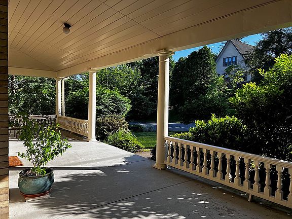You enter the home from an expansive porch that wraps around the front of the house, into a spacious living room with a grand staircase to the second floor. Off the living room is a large dining room filled with natural light from three-panel picture windows that overlook the back garden. Through French doors from both the living and dining rooms is a spectacular sunroom with an inviting gas fireplace and an outdoor terrace. Year-round, the backyard garden is a beautiful, secluded, and private place.