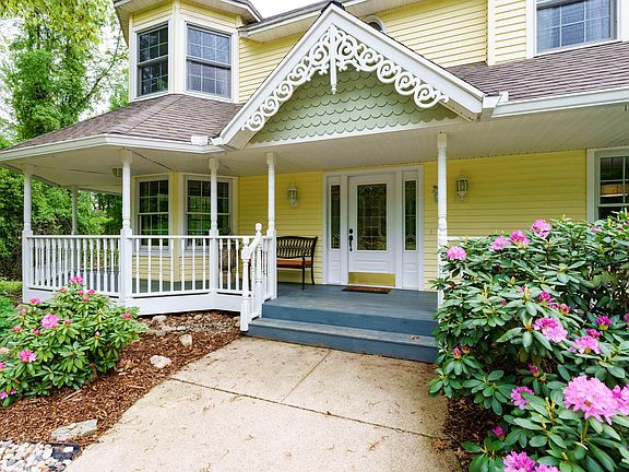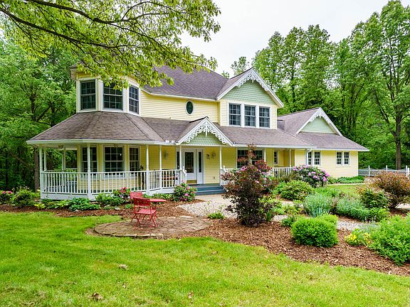 This spacious country home, tastefully updated and move-in ready, sits on 15 wooded gently rolling acres with a pond and private access to Lake Cochran. Sit in the lovely front cottage garden or the recently painted wrap around front porch. Take in the deer, turkey and rabbits on this captivating property. The inviting first floor is highlighted by an appealing open concept flow with hardwood and ceramic tile floors. The large 2 story foyer flanked by a formal dining room and home office/den welcomes you. A few steps away is the heart of the home where you find a generously sized great room with kitchen and informal dining area. Prominently displayed in the sunken sitting area the refurbished gas fireplace features a granite hearth, oak mantel and columned surround along with updated ceramic tile. The kitchen with ample freshly painted cabinets, granite