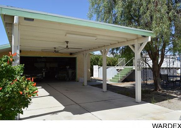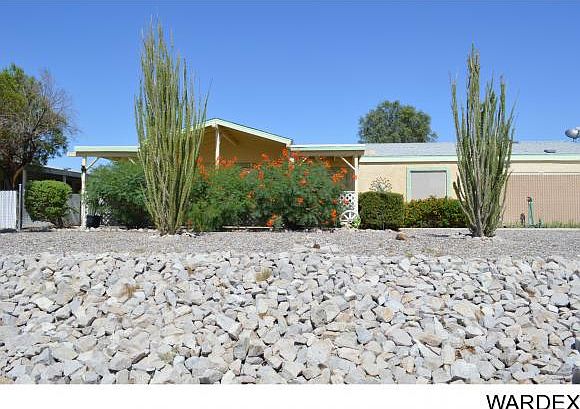 Desirable Holiday Shores, 3 bedrooms and 2 bath home. Master bedroom with walk in closet, dual sinks. Family room with fireplace. Bonus room with french doors that leads out to covered patio, gas BBQ hook ups. Open and spacious floor plan. Kitchen with breakfast bar and pantry. Windows with sun screens, Covered front porch. Front and backyard landscaped. Private above ground pool with deck. Fruit trees. Automatic opening gate, 2 car detached garage and RV/BOAT garage. Close to the Colorado River, shopping and restaurants! This is a must see!