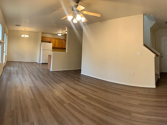 LARGE home with plenty of space for a family or perfect for college roommates. It is 1676 sq ft with 3 bedrooms and 2.5 baths. New flooring; Luxury hardwood-look downstairs and new carpet upstairs. This home is the middle unit in a tri-plex of townhomes all of which are owned by the builder. It's extremely nice with a balcony off one of the bedrooms, a gas fireplace in the living room, ceiling fans in all rooms, and a small fenced yard. All bedrooms are upstairs with large walk-in closets, the master bedroom has two walk-in large closets. Double car garage. Wired for security. Excellent location for quick access to I-35 and short distance to OU. Living room, dining room, kitchen and powder bath are downstairs. Three bedrooms, two full bathrooms, and washer and dryer are upstairs. The application fee is $50. Must have good credit and good rental history. Credit scores from 670 to 739 are considered good, otherwise a co-signer with good credit history will be required. One-year lease. The property deposit is $1395. The pet deposit is $1000 per pet. Plus $35 per month per pet. Two pet minimum. NO SMOKING.