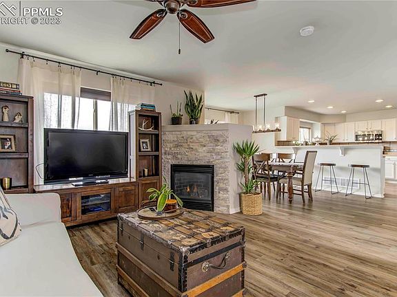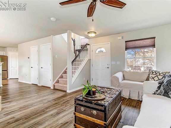 This beautiful home has been nicely updated where it counts the most! 4 bedrooms, 3 baths and a finished walkout basement will give you plenty of space. Vinyl plank flooring, a gas fireplace, an updated kitchen with stainless steel appliances and a dining area walking out to a deck complete the main level. Upper level is light and bright with a primary bedroom with its own 5 piece bath and walk in closet. Down the hall is the laundry, 2 bedrooms and a full bath. The finished basement has another living area that walks out to a huge patio for grilling or enjoying the day. There's also a den or study with newer vinyl flooring and french doors, and a 4th bedroom in the basement too! The rear yard is fenced, has a shed and the patio is partially covered below the deck. Plenty of sunshine and things to do in this area, this home backs to open space with a trail right behind it leading to a park just a few doors down. Ft. Carson is just a quick commute, schools, shopping, parks and other bases are nearby as well.
