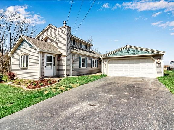 Picturesque Country Setting! Complete with strawberries, raspberries, blueberries & grape vines. Beautiful surroundings to enjoy year-round. Updated throughout & move in ready! Freshly painted first floor; kitchen with granite counters, portable island, & stainless appliances. Open dining room, living room combo with an adjacent area with a gas stove for those chillier days. What a beautiful view can be seen from the bay window in the first-floor bedroom. Both upstairs bedrooms are carpeted. Double sinks with plenty of cabinets & ceramic tile are in the updated first floor bath. The enclosed front porch is a bright bonus space, plus there's a large mud room. A 2.5 car garage & double wide black top driveway. Newer windows, furnace, well pump, septic and roof. Schedule a virtual appointment today!