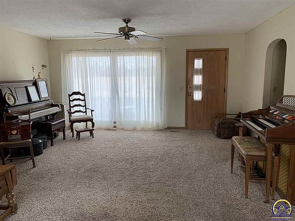 Spacious 3+ BR, 2 BA ranch with 3.4 ac +/- on edge of town. Sunny, updated kitchen w/pass-thru to dining and FR area. Lg living rm w/sliders to backyard. Two full bathrooms (one w/laundry area & jet tub) Appears to have hardwd flrs under carpet. Family room addition, kit & office have lam flr. Partial basement is partially finished. 90% eff FA/CA (2011). Det outbuilding, fruit trees & nice shade. Gas stove, dishwasher & microwave in kit. Attached 24 x 32 carport. Osage City has K thru 12 schools.