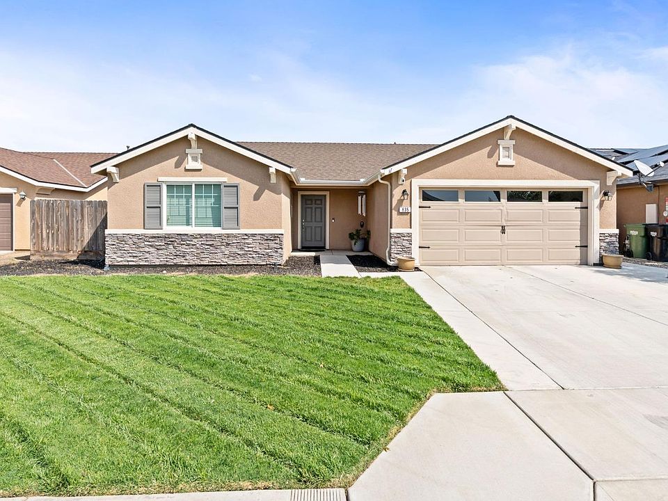 Welcome to this beautiful, move-in ready 3-bedroom, 2-bathroom home! Step inside and be greeted by an inviting open-concept layout that seamlessly connects the spacious living room and modern kitchen. The kitchen boasts stainless steel appliances, a gas stovetop, and a large islandperfect for entertaining or everyday living.Enjoy durable and stylish LVP flooring throughout the main living areas, with plush carpeting adding comfort in each bedroom. The attached 2-car garage provides convenient access to a functional utility room complete with washer/dryer hookups and built-in storage cabinets.Outside, the low-maintenance, beautifully landscaped lawn enhances the home's curb appeal and makes upkeep a breeze. Don't miss your chance to own this well-maintained gem!