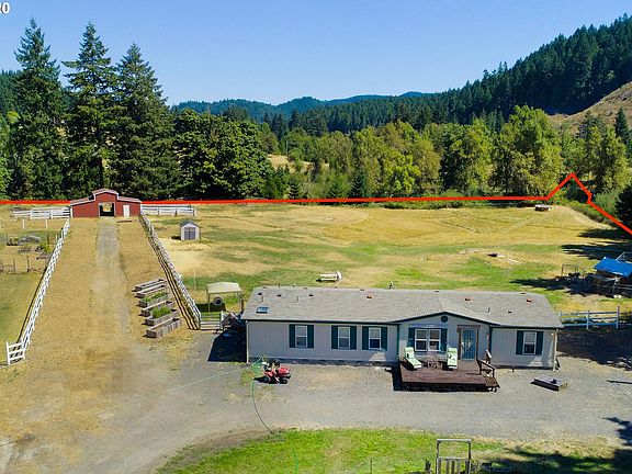 Beautiful, private working farm on 5+ acres! Comfortable and spacious 2001, 1782 sq ft, 4 bedroom, 2 bath manufactured home. Master features office nook, garden tub and walk in shower! Outside is all usable, rolling pasture that is perimeter and cross-fenced. Plus new barn, garden, raised beds, creek front, excellent well per-seller! Self-sufficiency and privacy awaits! Thousands of acres of BLM and private timber property are at your doorstep!