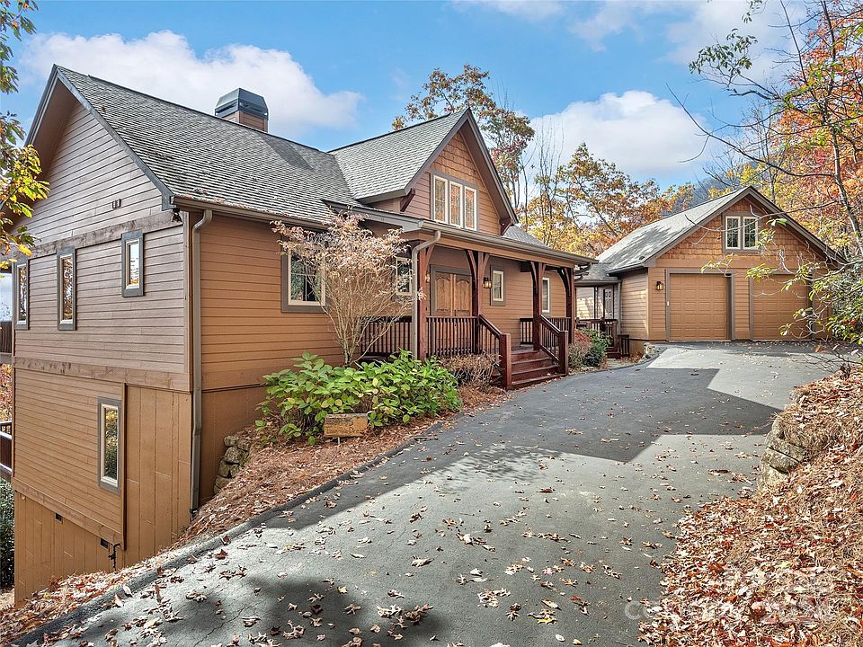 Beautifully perched on Toxaway Mountain with its own private waterfall, this well appointed mountain retreat boasts an open floor plan with spacious indoor and outdoor living spaces on both levels. Thoughtully laid out with the primary bedroom suite on the main level in addition the well outfitted kitchen, dining and great rooms plus a two car garage for accessibilty and ease of living. The private lower level has three bedrooms, two full bathrooms and plenty of space for entertaining with both a den and an outdoor deck. Decks and exterior are freshly painted. This home is move-in ready and not to be missed.