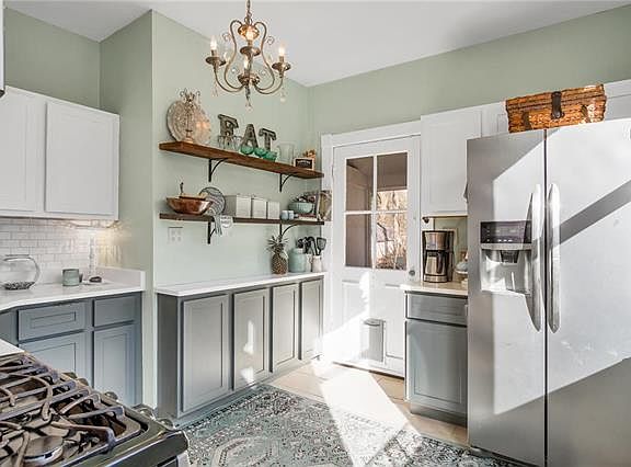 A 1.5 story home in Tuxedo Park with updates and charm. An inviting front porch entry opens to a large living room with fireplace. Polished hardwood floors and period wood-trimmed windows, doors and baseboards throughout. An archway leads to a separate dining room. The light-filled kitchen features painted white/grey cabinetry, tile flooring and SS appliances. A sun porch off the kitchen overlooks the large, level backyard with new retaining wall. Two first floor bedrooms and a full bathroom with updates and period honeycomb tile flooring. Newly installed barn doors on each bedroom round out the uniqueness of this first floor. Two additional bedrooms on the upper level also features built-in bookshelves and storage closet. Partially finished lower level with family room/rec room space, workshop and ample storage. Family friendly neighborhood within walking distance to Avery Elementary, Lockwood Park, shopping and dining. New plumbing and 1 year old Architectural roof. A must see!