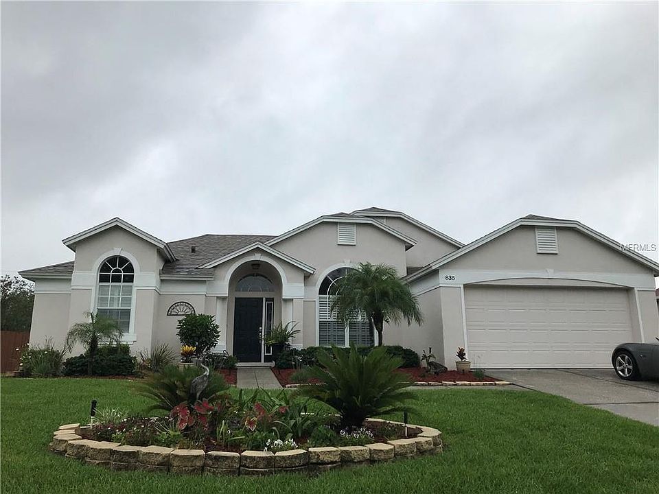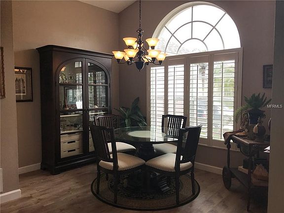 Immaculate home with great curb appeal, upgraded finishes, private oversized lot and outstanding location! New Roof and AC installed in 2016. Upgrades include gas water heater, Pella double pane sliding doors, wood look laminate flooring thorough all living areas, 5¼ inch baseboards and custom plantation shutters on all windows. Pleasant color palette, crown molding, volume ceilings and split floor plan. As you enter the home you are welcomed by a foyer with architectural detail, the formal sitting room to the front, master suite on the left and dining room to the right. The right side of the home includes a designer kitchen with custom cabinets, eating nook, family room, laundry and two bedrooms and a bathroom. This contemporary kitchen includes a gas range, stainless steel appliances, glass tile back splash, touch activated faucet and granite counter tops. The private master suite features a tray ceiling, beautiful ceiling fan, access to the backyard and spacious walk-in closet. The master bathroom retreat highlights include a custom, fully tiled, glass frame-less shower, garden tub and double sinks. Enjoy your days off in the oversized, stylish paved outdoor living space with covered lanai, pergola, grill nook and tropically landscaped yard. Includes backyard storage shed. No short term rental. Washer, dryer, fountain in backyard, all garden pots and front yard boulders do not convey. Pet door was custom made for this home and includes safety and energy conservation features. Welcome home!