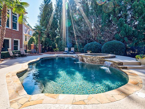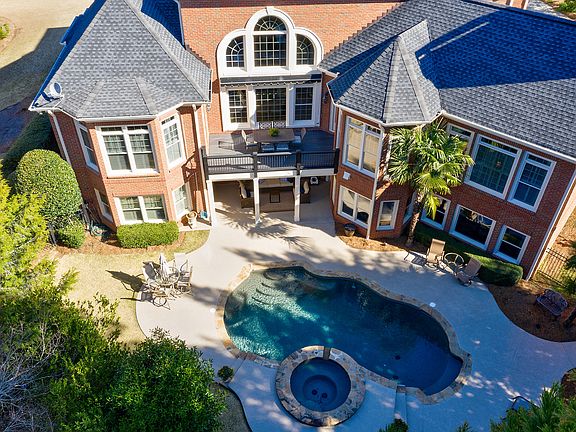 Stunning brick traditional with heated pool and spa on a beautiful private lot in the picturesque tree-lined gated estate community of the Chattahoochee. Elegant appointments and architectural details showcase the functional floorplan and custom finishes. Sun-lit two-story great room with coffered ceiling and walls of windows leads to open kitchen and fireside keeping room for gatherings. The Master bedroom on the main level has private access to the deck and fabulous custom closet. Large secondary bedrooms feature ensuites, built-in desks and custom cabinetry.The finished terrace level offers several recreation areas and the kitchenette, wet bar, bedroom, and full bath make for incredible in-law suite. The entertaining space extends outdoors through the covered patio to the private pool with waterfalls, spa, and courtyard. This well thought out floorplan also boasts a wine cellar, oversized three-car garage, custom study areas, bonus rooms, and ample storage. Located very close proximity to prestigious private schools and excellent public schools. While this quaint neighborhood offers exclusive privacy and an idyllic lifestyle, it is just minutes to Atlanta Athletic Club, outdoor recreation, shopping, and dining.