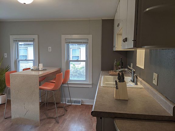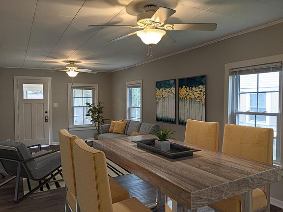 Conveniently located close to schools, parks and shopping. Enclosed front porch brings you into large living room with dining area, bedroom, full bath and laundry, kitchen, office area leads you to upstairs bedrooms. Garage is oversized 14' x 20'. Cute as a bug and ready to move into! Some photos are virtually staged.