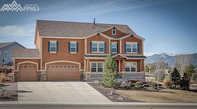 WOW WHAT A GORGEOUS HOME! VIEWS OF THE MOUNTAINS, PARK-LIKE YARD, PERFECT INSIDE. HICKORY HARDWOOD FLOORS, NEUTRAL COLORS, GRANITE IN GOURMET KITCHEN WITH 42" CABINETS. HUGE MASTER WITH SITTING AREA, WALK IN CLOSET, 5 PC BATH AND HEATED FLOORS! FINISHED BASEMENT WITH BIG ENTERTAINMENT AREA. CONCRETE PATIO OVERLOOKS STUNNING YARD. OVER A HALF ACRE LOT! SO MANY EXTRAS - 3 SIDED FIREPLACE, HARDWOOD FLOORS, WHOLE HOUSE SURGE PROTECTOR, SURROUND SOUND SPEAKER ON MAIN AND BASEMENT, LAUNDRY SHOOT, AND AC. BRIGHT GARDEN LEVEL BASEMENT, 9 FOOT CEILINGS AND ENSUITE BEDROOM. A TEENS PARADISE! LOFT AREA IS PERFECT FOR THE KIDDOS TO CAMP OUT IN. ROOMY 3 CAR GARAGE THAT IS FULLY FINISHED. CLOSE TO SCHOOLS, SHOPPING AND NEIGHBORHOOD WALKING TRAILS. QUICK ACCESS TO I-25 FOR AN EASY COMMUTE TO DENVER OR COLORADO SPRINGS. THIS HOME IS MOVE IN PERFECT AND READY FOR YOUR FAMILY! COME SEE IT TODAY!