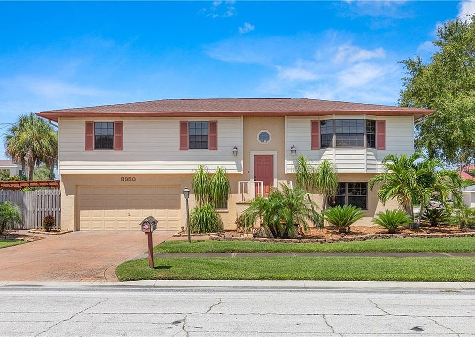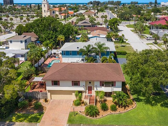 With 2,801 total square feet, this meticulously kept, elevated home on St. Pete Beach boasts three bedrooms and two bathrooms on the top floor and the bottom floor has a bonus bedroom/den, additional bathroom, laundry room, and family room with an adjacent screened in patio. This home has a flood insurance policy that is assumable, for $542 a year-what a deal! With a two car garage on the first level paired with double driveway, this home has ample parking. A water softener and hurricane film treated windows (Rated to 208mph) convey with the home. Upgrades to this tropical paradise include lush landscaping with solar lights, updated appliances, a new AC unit in 2016, irrigation system that runs off of reclaimed water, reverse osmosis system in the house, and so much more. The upper and lower living space have views of the intracoastal waterway. This backyard has ample room for a pool or spa. Situated on a large corner lot, this home is a short distance to Upham Beach, Corey Avenue and multiple eateries. Schedule your appointment to view this St. Pete Beach gem today!