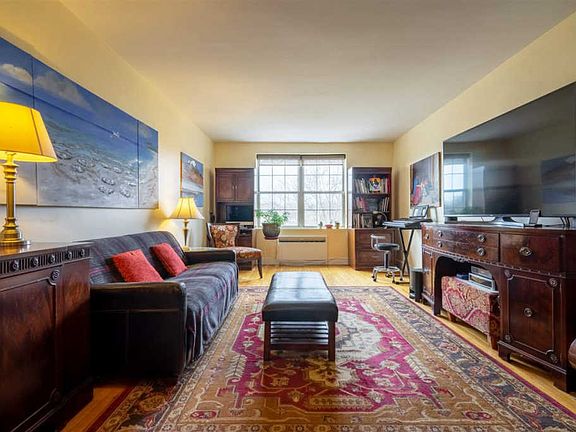 Now available at Woodcliff Gardens, a wonderful and welcoming pet-friendly community only steps to NYC transportation (25 minutes fromMidtown) is this very spacious, sunny and inviting, well-maintained one bedroom apartment with beautiful park views from every window. The unit features recently installed gleaming hardwood floors, a renovated bathroom, lots of storage, deep closets and sits right across the street from the 167 acre Braddock Park including Woodcliff Lake which was recently given a $4 million makeover. An open and expansive living/dining area is perfect for entertaining. The bedroom is large enough for king-sized furniture, features his and hers closets and is located down a short hallway to ensure privacy. The charming kitchen features stainless steel appliances and granite countertops. A quick stroll across the street provides an escape into nature. You can relax on a bench lakeside, bird watch, fish or explore further and find picnic areas, a dog run, walking, jogging and biking trails and 45 sporting facilities (tennis courts, handball, racquetball, soccer, etc.) with fantastic views of the NYC skyline and a new cafe. Additional community amenities include an elevator, full service laundry room, an outdoor pool and jacuzzi for summertime fun, an exercise room for a small annual fee, a community meeting room which can be reserved for your private events, a library for your reading pleasure and bicycle storage. Parking and additional storage bins as available for an additional charge. Each building has its own porter assigned to keep the premises clean and tidy on a daily basis. Many bus lines run 24/7/365 or pop on the shuttle to the ferry. Maintenance is up to 48% tax-deductible. Come take a look and enjoy a quick commute to midtown NYC from this perfect and affordable home!