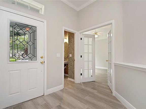 - Interior Features: Ceiling Fans(s), Master Bedroom Downstairs, Split Bedroom, Crown Molding, Walk-In Closet(s), Window Treatments, Solid Surface Counters, Solid Wood Cabinets, Eating Space In Kitchen, Kitchen/Family Room Combo
