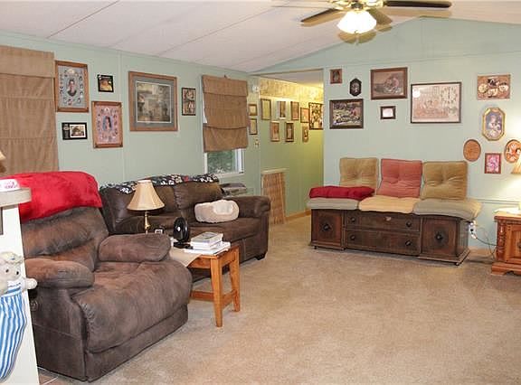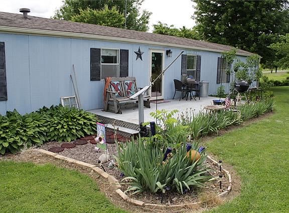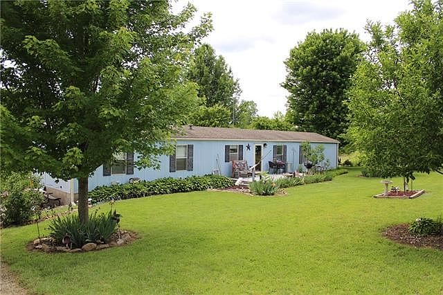 Looking for a few acres to enjoy with your next home? Here's the one you're looking for. This manufactured home, built in 1995, has been sitting on these three acres adorned with a wide variety of beautiful trees, flowers, and shrubs since 2001. Apples, irises, peonies, lilacs, asparagus, grapes, etc., etc., etc. Looking for conversation? The purple martins love to chatter, perhaps with their approval of the two ponds. Do you have pets? Check out the fenced pet area near the back deck. Like to garden or are you dreaming of a craft shed? The detached multi-section blue shed is perfect for your hobbies (separate brown storage shed is excluded from the sale and will be removed prior to closing). Feel like a workout? The outdoor playground set stays. Inside the home are three bedrooms, two full bathrooms, and a semi-divided open area which includes space for living, dining, and cooking. The listing for this all-electric home includes the refrigerator, dishwasher, oven/range, washer AND dryer along with existing window treatments. The master bathroom includes both an oversized garden tub and a walk-in shower. Wooden decks on both the front and back are perfect for enjoying the outdoors. The back deck is covered for shade from the sun and shelter from the rain. It's time to slow down and enjoy life in this beautiful setting while still being within a few miles of the Interstate highway or the County seat. Come take a look today!