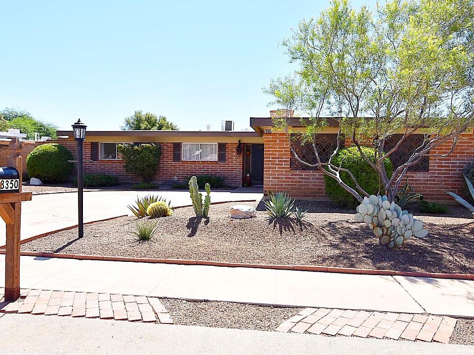 Come see this charming, brick constructed home in a tranquil, well-established neighborhood on the East side of Tucson. This home comes complete with little maintenance and beautifully landscaped front and back yards while featuring a welcoming kitchen, abundant counter and cabinet space with a convenient pocket laundry room and fireplace for those cool Arizona nights. In addition, there's a great dining and living room for entertaining your guests, two full bathrooms, and three bedrooms while retaining the value of peaceful living with no neighbors directly behind the property. As a ''cherry on top'' it's located conveniently close to shops, gyms, schools and transport.