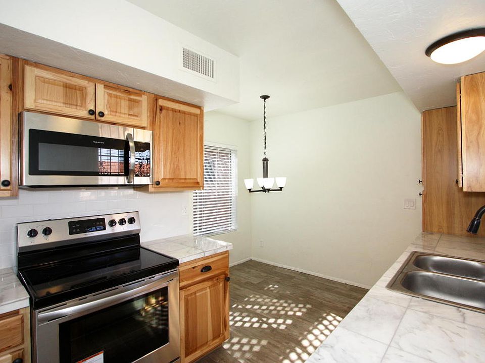 * Remodeled 2BR/2BA Townhome in desireable Rolling Hills Villas, adjacent to Rolling Hills Golf Course! Excellent location with access to The Loop Bike Trail directly across from the subdivision, nearby parks & tennis courts! Tucked in the back of the community, this townhome features HARDWOOD floors and ceramic tile floors in kitchen & bathrooms. Updated kitchen includes corian counters and newer cabinets. Master bathroom features granite top vanity, remodeled shower and mirrored closet doors. Resurfaced bathtub in guest bathroom. Lovely patio can be accessed from great room and master suite. Deep garage with built-in cabinets. Newer water heater. Washer and dryer included with full price offer. Community offers pool/spa, (2) dog parks and RV parking. Hurry on this one!