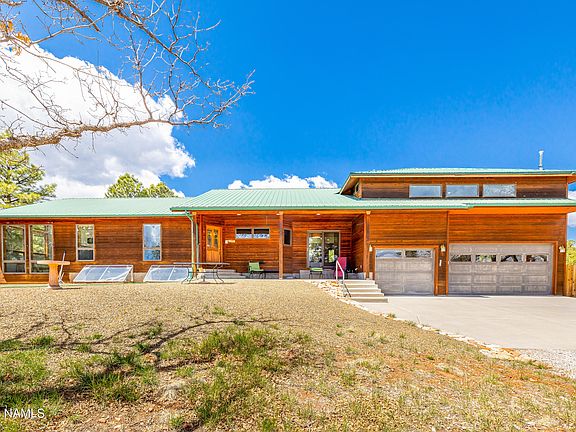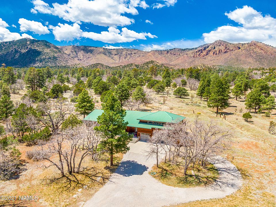 Beautifully tucked back in the highly desirable North Peak subdivision this 4000+ square foot custom home sits on 2.34 acres and borders National Forest Service on two sides. Surrounded by mountain views, ponderosa pine, juniper, pinon and oak trees you have privacy and seclusion yet downtown Flagstaff is only minutes away. The home is perfectly placed on the back side of the parcel leaving room for outbuildings or a corral to be added. On the main level you will find the primary suite, large open kitchen/living room area, dining room, family room, office, laundry room and access to the attached 3 car garage. Each room boasts several large windows letting in ample amounts of natural light and encompassing the one-of-a-kind scenery.