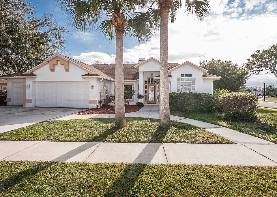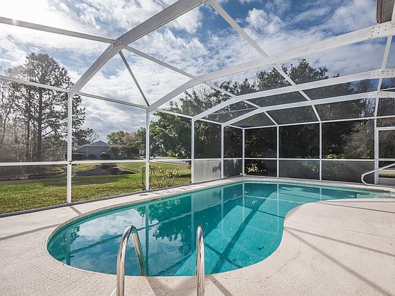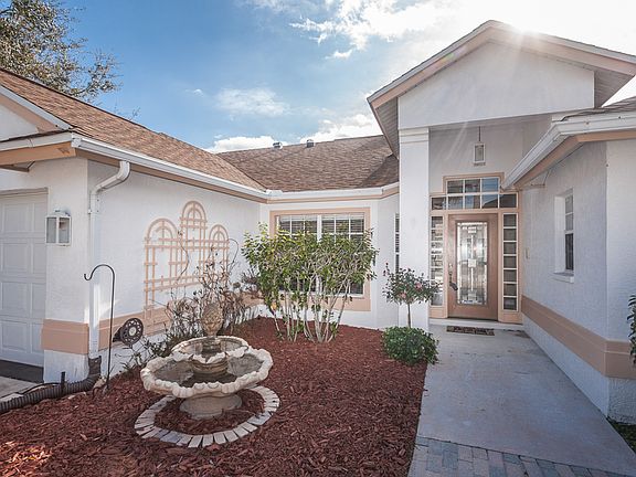 Welcome to this well maintained Trinity Oaks home on a large corner lot with beautiful conservation/pond view! Saltwater Pool home offers 4 bedrooms, 2 baths, and 3 car garage on nearly a 1/4 acre. Impressive front entrance with brick paver double entry sidewalk and fountain to greet you. Step in home to the real hardwood floors in dining and living room that lead to the family room, divided by a see thru wood fireplace and overlooking the back patio and screened in pool. Family room is open to the upgraded kitchen with glass tile backsplash, granite counters, LED lighting and high-end stainless steel appliances. Master bath and guest bath have been beautifully remodeled. Spacious master w/ slider to patio, 2 walk-in closets with the bathroom offering two separate vanities, water closet, garden tub, and separate shower stall. 3 additional bedrooms with 1 of those having french doors that is a perfect office set up. Addtl upgrades include all major windows replaced w/ hi-energy LowE-366 dbl pane w/ argon gas, 60 gallon H2O heater, whole house surge protector, garage door, pool deck, saltwater system, self cleaning and pump, deep well with iron remover, wrought iron fence, exterior paint, extensive landscaping and privacy barrier, soft water system, disposal, garage led lighting, all ducts were resealed and R36 insulation added to attic. Low HOA, No CDD, No Flood ins! Great community with park & playground, conveniently located to medical facility, shopping, dining, beaches and Tampa International airport.