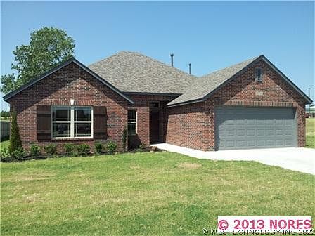 Beautiful NEW Home in South Tulsa! Great Location and Affordable! Elegant hardwood entry, built-in cabinets, brick fireplace, hand-textured walls with glazing, large archway to kitchen, laundry room, 10' ceilings, whirlpool, many extras...must see.