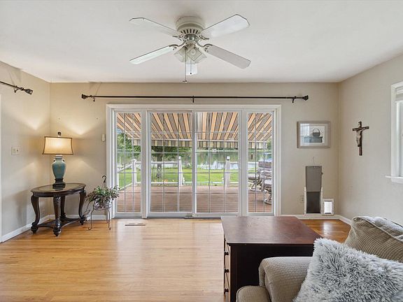 Lakefront living under 300k! This home is perfectly positioned on 1/4 of an acre and steps away from your 60 ft of frontage on the beautiful Round Lake in Hillsdale County. Round Lake is an all-sports lake so bring your all of your water toys! This home offers drive up appeal with its stone-front exterior. It also has ample exterior storage with a 3 car garage & an attached shed for all of your outdoor needs! Inside, it is light and bright with large windows, open concept living space and a great 3-seasons room that is surrounded by windows! It has a composite back deck with glass railing to enhance your view of the lake. Plus, a retractable awning for those days you want some extra shade! Manage through any power outage with this homes whole-home generator that powers on automatically when there is a power shortage. Central air, tankless water heater, dock included, updated electrical, leaf gutters, updated bathroom, partial roof replacement in 2020 and 2024 and much more. Call today to schedule your private tour of this gem!!