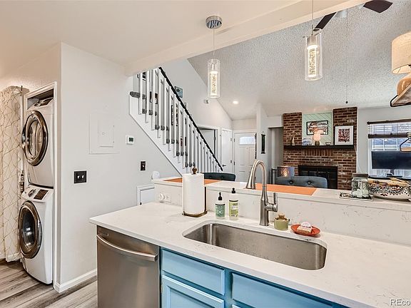 Don't miss out on this show-stopper townhome! Completely remodeled just 2 years ago! Open bright end unit floorplan w/ wood burning fireplace. In the kitchen you'll love the newer stainless steel appliances, quartz counters, tiled backsplash, breakfast bar, lighting. Upstairs and downstairs full bathrooms completely remodeled including new tile flooring and quartz counters. New windows and A/C! New carpet and wide plank durable laminate flooring. Upstairs loft/office space next to the main bedroom, also a 2nd bedroom and full bath on the main floor. Private exterior eating space and additional secured storage. In-unit new front load washer and dryer that remain with the home. Reserved parking for 2 with ample visitor parking! Neighborhood pool, close to Standley Lake and Nottingham Park!
