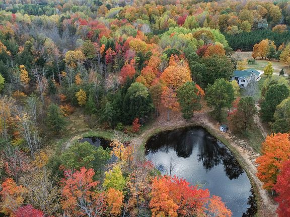 Welcome to this incredible estate, located just minutes from the HWY, yet privately tucked away onto 68+ acres of some the best ground that the area has to offer. This 4000+ square foot 4 bed 3 bath sprawling ranch home was built in 2016, and is in pristine condition. Hardwood floors, modern open layout, main floor master suite and much much more! The elevated home features a full finished walkout basement, with a walkout exit into the gorgeous backyard. Second kitchen in the basement makes it a perfect possible in-law apt, and includes its own full handi-cap accessible bathroom and bedroom. The gentle slope out of the back leads down to a meticulously maintained fishpond, surrounded by mature maple forest and trails on every side.