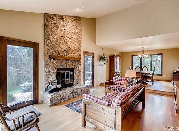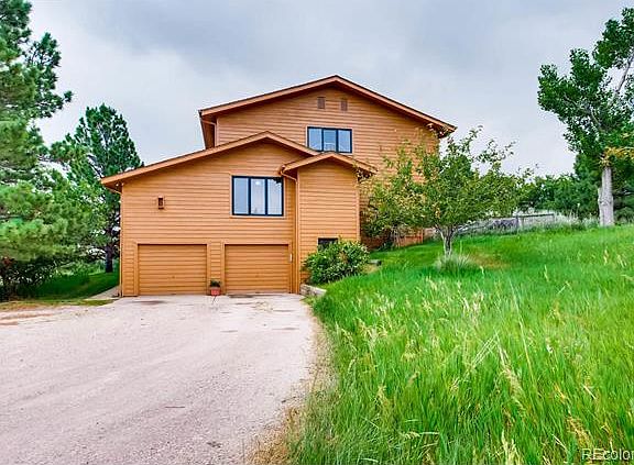 If you have been looking for land, privacy and beauty close to the amenities of Lone Tree and Castle Rock, this home is for you. Beautiful 4 bedroom, 3 bath home on 5 acres with a 5 stall barn. On the main floor, find a main floor master with updated master bath, updated kitchen, newly buffed wood floors in the dining and living rooms, and wood burning fireplace. There is also a main floor study with built in shelves. Upstairs, find 3 more bedrooms, a full bath and a family room (could become 5th bedroom with addition of closet). Unfinished basement, aside from a craft/workroom, awaits your personal touch. Relax on trex deck with pergola, and enjoy the lawn area with sprinkler system, calming water feature, a fenced portion to keep your dogs safe from the wildlife, and acres of land with ponderosa pines, birds and other wildlife. Two car attached garage, as well as detached two car garage with electricity, and 5 stall barn with electricity, water, and rubber mats. Bring your horses!!