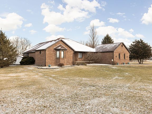 Custom brick ranch with finished basement on 3 private acres, No HOA! This home sits on a peaceful country road and is surrounded by fruit trees and fields! Inside, an open-concept floor plan boasts 4 beds and 3 full baths in its 3,700 finished feet. The main floor showcases an eat-in kitchen overlooking great room, formal dining, and office/den! Master bedroom (with access to screened in porch) is complete with his/her vanity and closets. In the basement you'll find 2 bedrooms and a full bath accompanied by a wonderful living space! 2 car attached and 2 car detached provides space for all of the toys! Plainfield Schools!