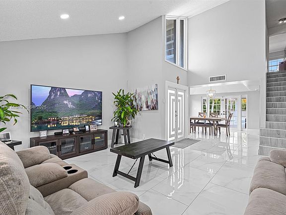 Fall in love with this spacious 3-bed, 2.5-bath, two-story pool home on the largest lot in the neighborhood! Features include an additional family room that can be used as a 4th bedroom or office, hurricane-impact windows, elegant French doors, and new laminate wood floors upstairs with neutral tile downstairs. Enjoy the lushly landscaped backyard with an oversized pool, outdoor lounge/bar area, and serene canal views. Quiet, family-friendly community with a park, playground, and top Broward County schools.