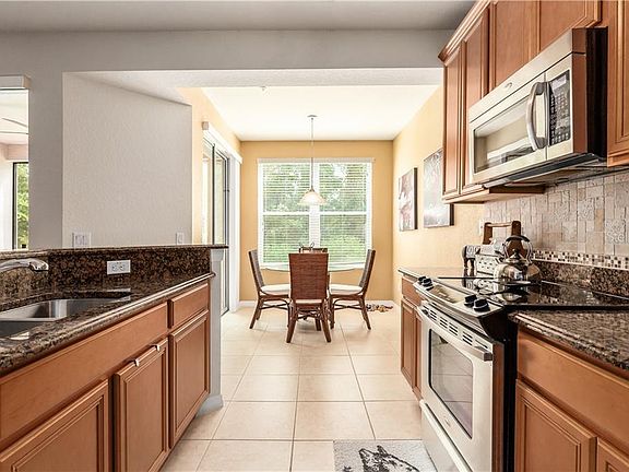 This FURNISHED 2 bedroom 2 bathroom + {DEN} Heron model offers a split floor plan that allows privacy to both bedrooms. The home has a great kitchen with upgraded maple cabinetry, stainless appliances, and granite countertops. The living room has sliding glass doors that further open up the room to your screened in lanai overlooking a wooded area. The breakfast nook right off the kitchen also opens up to the lanai. It the perfect place to unwind with a meal al fresco or your favorite beverage and is already set up with a TV as well! Your HOA dues for the Bella Trae community also include internet, cable, pest control, exterior maintenance, and grounds maintenance. The community of Bella Trae has a stunning 12,000+ sq. ft. clubhouse that includes a state of the art gym, fitness studio, zero entry saltwater pool, media room, billiards room, bocce ball court, a putting green, social activities for all, and much more. Conveniently located close to world class entertainment, shopping, dining and in between 2 international airports this home will make you feel like you are on a permanent vacation.