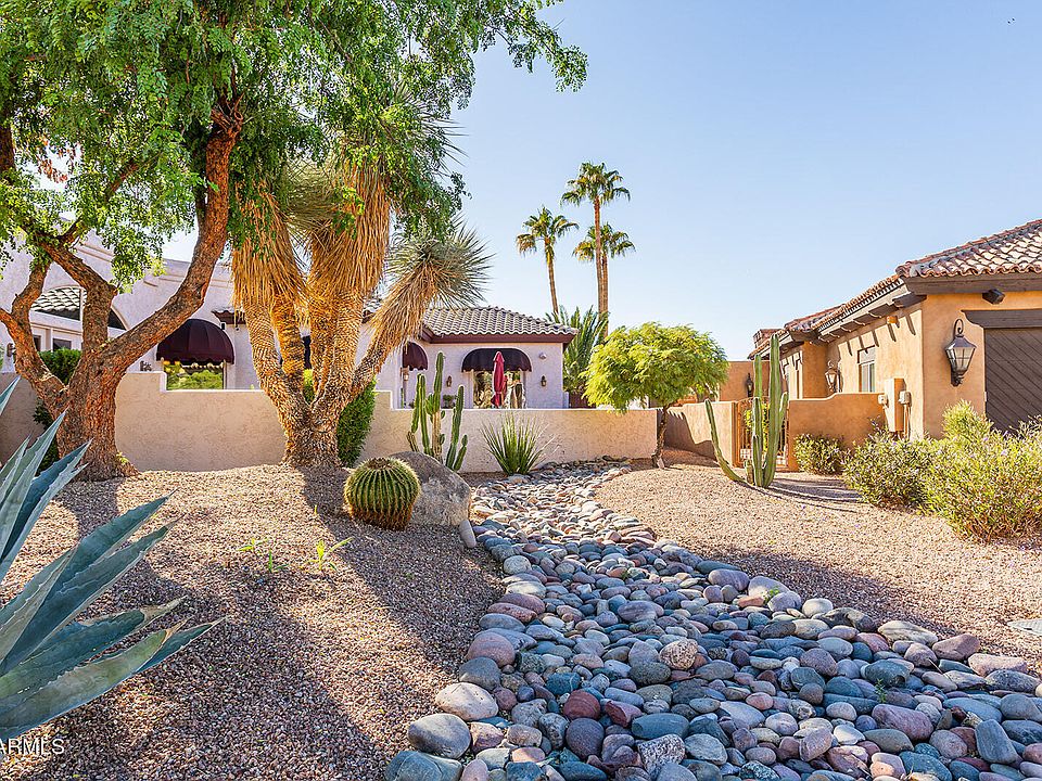 Luxury Living in Gold Canyon's Only Double-Gated Community! Fully furnished custom home with 2 primary suites, rich knotty wood cabinetry, and an open floorplan with skylights. Family and dining rooms open to a courtyard with stunning views. Updates include $80K in exterior upgrades, newer spa heater, 2 newer A/C units, and reverse osmosis. Resort-style backyard offers outdoor kitchen with grills, sink, fridge, and oversized spa that doubles as a cooling pool. Low-maintenance landscaping makes this a true lock-and-leave. Rarely available—don't miss this opportunity
